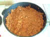 When the onion is finished add the forcemeat and fry it rather hard. Meanwhile try to chop the forcemeat into as small pieces as possible. This will make the drying easier.
